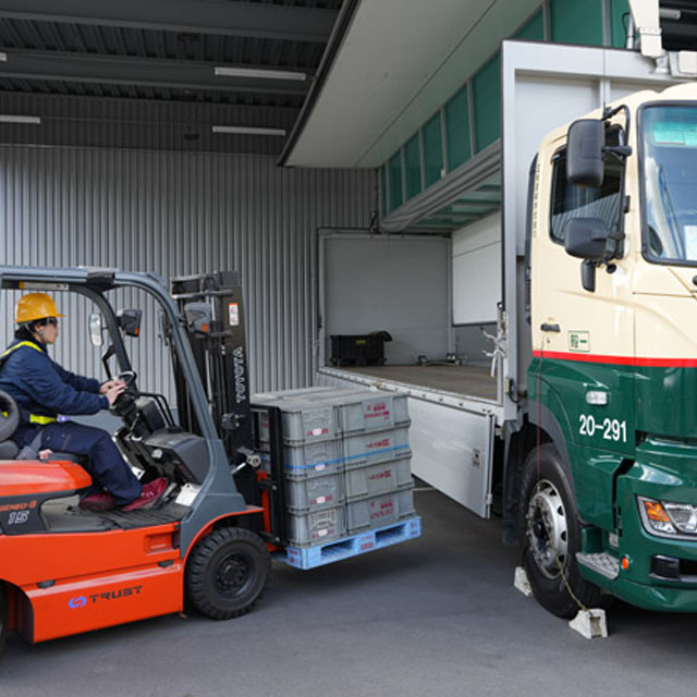 トラック置き場より客先へ。客先より配送先へ積荷を運送します。
