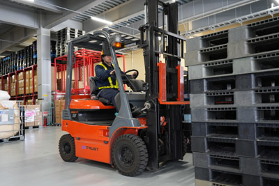 自信がつくまで練習できる「フォークリフト道場」完備